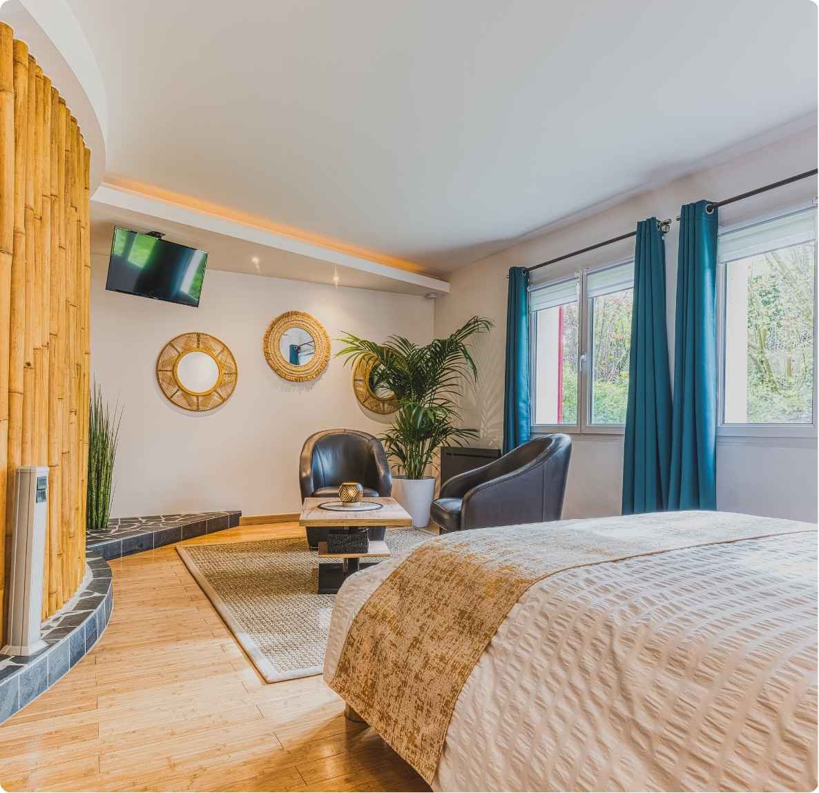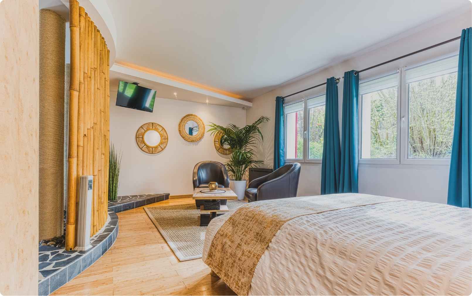 Bienvenue dans notre chambre d’hôtes nichée dans un écrin de verdure à Chessy - Marne la Vallée. Notre suite de 50m2 vous offre un véritable moment de détente dans une ambiance japonisante, zen et apaisante.